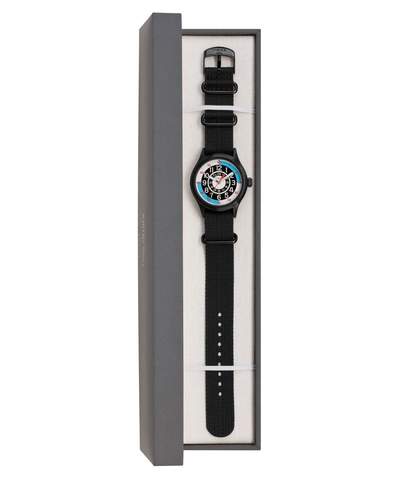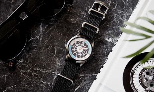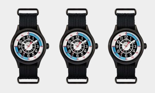 TODD SNYDER and TIMEX have collaborated again for another timepiece. The Blackjack watch is a timepiece that is inspired by the 1970s formula once race drivers with the roulette and speed dial design inside the dial. Has 60 minutes red indices, especially the red seconds marker., Also it comes in a nylon military style nylon strap. It comes with 50M water resistance, black case finish and the movement is quartz. When purchasing this watch, it comes with a case that certainly is a nice touch from TODD SNYDER. This is now available for a reasonable price of $138.00.