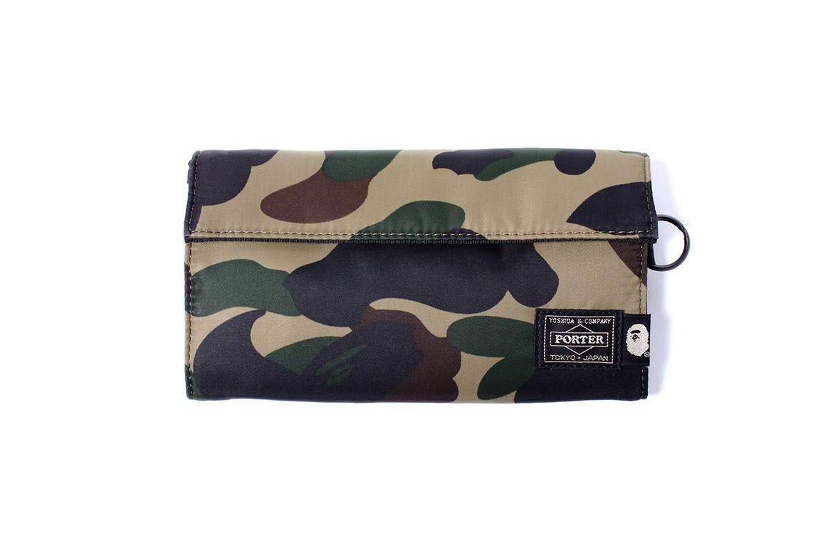 BAPE and porter has once again collaborated to produce these new camouflage accessories. The line up consist of a rucksack, sling bag, messenger, and wallets. This collection has two camouflage colorways, which are light and dark but the patterns are the same. The rucksack is a backpack but is made from those who like to carry their music records. The sling bag are in trend right now and has multiple pockets as with the messenger. The two brands have decided to create two wallets, and tri-fold and a zipper wallets, which are included in both colorways. Certainly BAPE has never forgotten their camo roots and this is the case with this new items. Will be available in October 28, 2017 online and BAPE retailers.